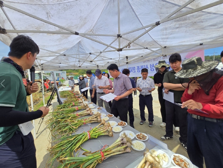 | ▲ 농기원, 12일 현장 평가회 ‘고품질·고수량 씨마늘 공급 |