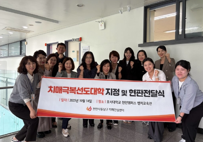 [무한뉴스=정민정 기자] 천안시는 14일 치매극복선도대학으로 신규 지정된 호서대학교 글로벌융합대학에 현판을 전달했다고 밝혔다.