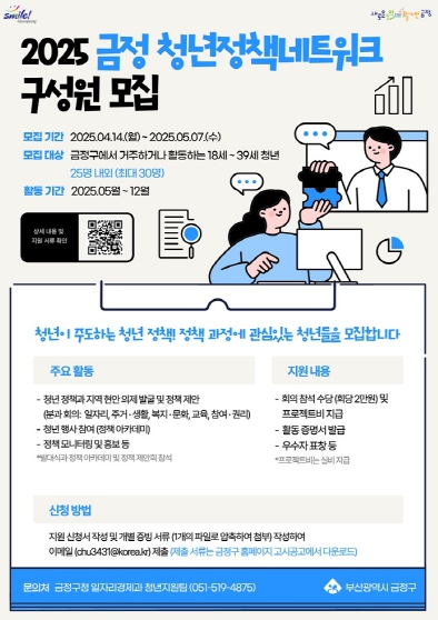 ▲ 부산 금정구 2025 금정 청년정책 네트워크 구성원 모집 |