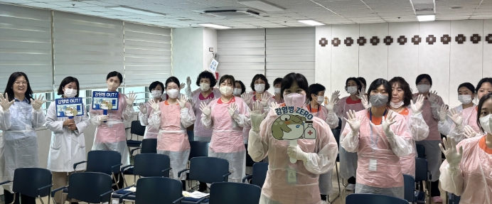 ▲ 주성삼병원 종사자들이 감병예방 교육을 하고 있다.