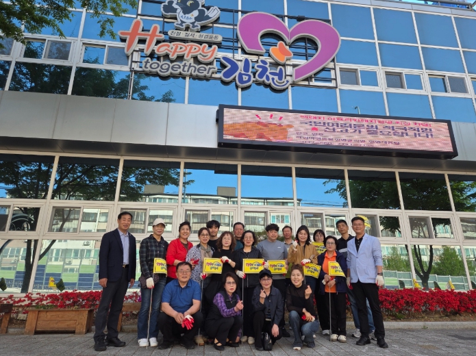 [무한뉴스=최진수 기자] 김천시 지좌동 주민자치위원회(위원장 김송호)는 4월 21일 지좌동 행정복지센터 청사에서 주민자치위원 20여 명이 참석한 가운데 '지좌동 슬로건 홍보 깃발 게시 퍼포먼스'를 가졌다.