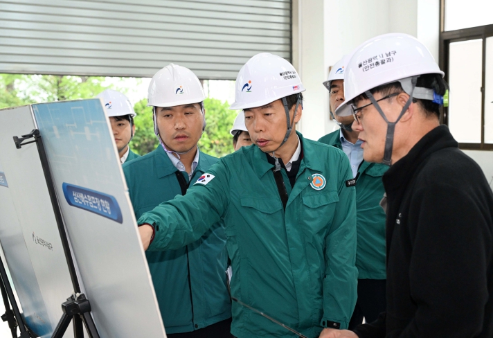 ▲ 22일 이채권 남구부청장이 2025년 여름철 자연재난을 대비해 담당공무원과 함께 삼산배수펌프장 내 시설물의 이상유무를 점검하고 있다. |