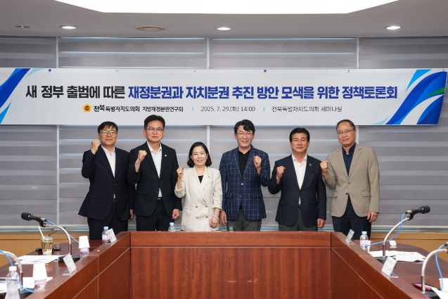 [무한뉴스=정민정 기자] 전북특별자치도의회 지방재정분권연구회 정종복 대표위원(전주3)은 29일 전북특별자치도의회 세미나실에서 ‘새 정부 출범에 따른 재정분권과 자치분권 추진 방안 모색을 위한 정책토론회’를 개최했다.