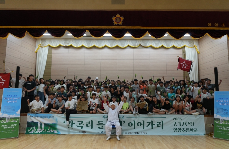 [무한뉴스=정민정 기자] 들판을 일구던 어른들의 노래가 어린이의 입에서 다시 피어났다. (재)영암문화관광재단은 ‘2025 찾아가는 전통문화활동 지원사업’의 일환으로, 지역 문화예술단체 더현음재(대표:정세영)와 함께 진행한 “우리의 노동요, ‘갈곡리 들소리’ 이어가리” 행사가 제헌절인 7월 17일 성황리에 마무리했다고 밝혔다.