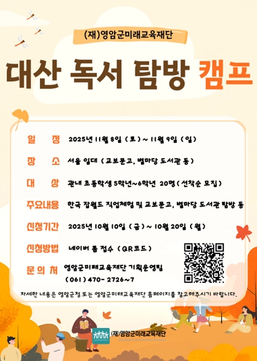 | ▲ 영암군미래교육재단, 대산 독서 탐방 캠프 참가자 모집 |