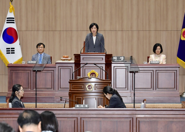 신수정 의장은 “이번 임시회에서 시와 교육청의 첫 추경이 예정되어 있으며, 시민들께서 허리띠를 졸라매고 있는 이 어려운 시국에 혈세 한푼 한푼이 헛되이 쓰이지 않도록 필요하지 않는 곳은 과감히 쳐내고 정말 급한 민생 현장에는 두 팔 걷고 나서서 침체된 경제에 단비 같은 역할을 할 수 있도록 의원들께서 한 치의 소홀함 없이 심의해 줄 것을 간곡히 부탁드린다”고 밝혔다.