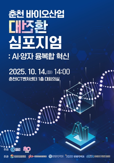 춘천시는 오는 14일 오후 2시, 춘천ICT벤처센터 1층 대회의실에서 ‘춘천 바이오산업 대전환 심포지엄: AI‧양자 융복합 혁신’을 개최한다. 시는 이번 심포지엄을 통해 바이오산업의 대전환을 준비하며 첨단 융복합 산업을 선도하는 도시로 도약하기 위한 실질적 전략을 모색한다.