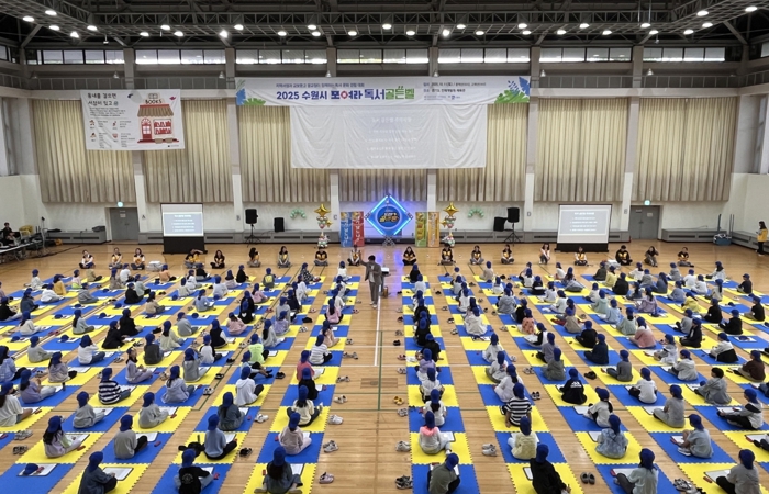 [무한뉴스=양현명 기자] 초등학생 500명이 참여한 ‘2025 수원 독서골든벨’ 대회가 11일 경기도인재개발원 체육관에서 열렸다.