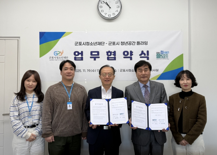 [무한뉴스=손성기 기자] 재단법인 군포시청소년재단은 11월 19일 대표이사실에서 군포시청년공간플라잉과 청소년·청년의 성장 연계 및 참여 지원을 위한 업무협약을 체결했다.