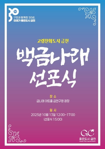 금천구 개청 30주년과 제2기(2025~2029년) 고령친화도시 조성의 시작을 기념하는 자리다. 금천구 대표 캐릭터인 금나래와 어르신의 백발을 합친 표현 ‘백금나래’를 통해 건강하고 주도적인 노년의 삶을 강조한다. 금천구는 2024년 노인 인구가 20%로 초고령사회에 진입했다.