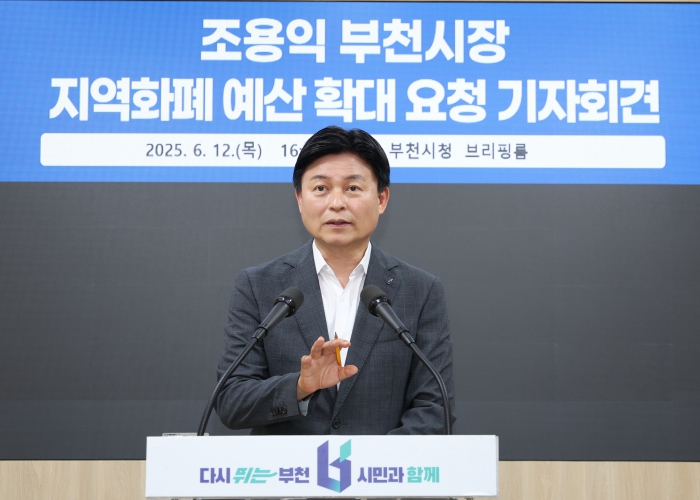 [무한뉴스=정승훈 기자] 조용익 부천시장이 12일 부천시청 브리핑룸에서 기자회견을 열고, 이재명 정부의 소비 진작을 위한 추가경정예산(추경) 편성을 환영하면서 지역화폐 관련 국비 예산 대폭 확대를 요청했다.