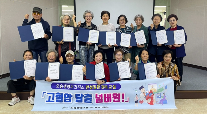 [무한뉴스=정민정 기자] 청주시 흥덕보건소는 30일 오송생명과학단지 건강증진형 보건지소에서 지역 주민의 고혈압 예방과 자가건강관리 능력 향상을 위한 ‘고혈압 탈출 넘버원!’ 프로그램이 성황리에 마무리했다.