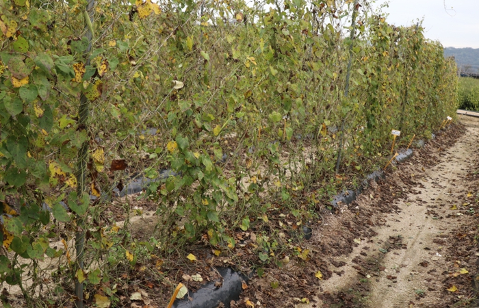 재배 관리 측면에서는 잎이 과번무하지 않도록 밀식을 피하고, 지주를 세워 포장 내 통풍이 잘 되도록 해야 한다.