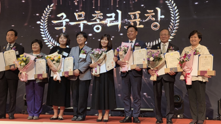 | ▲ 제29회 노인의 날 기념 국무총리 표창 수상 단체사진(왼쪽에서 3번째 황지연 관장) |