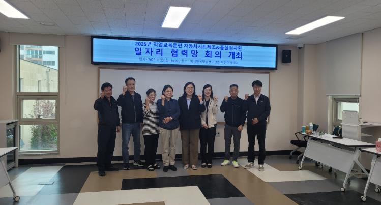 이날 회의에는 이번 직업교육훈련을 운영하고 있는 유성산업, (주)성웅인더스트리, 현진산업, (주)제영에스엠티, (주)가온누리, (주)평창, (주)용산 등 자동차 시트 직종 관련 업체가 참석해 훈련생의 취업 활성화 방안 및 교육훈련 과정에 대해 논의하고, 취업 지원을 위해 적극 협력할 것을 약속했다.