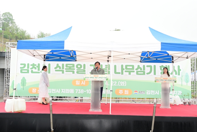 배낙호 김천시장은 기념 인사말을 통해 “오늘 우리가 심는 한 그루의 나무가 내일의 숲을 이루고, 우리 아이들에게 푸른 미래를 선물하게 될 것이다.”라며, “녹색 도시 김천을 만들기 위한 실천에 시민 여러분의 지속적인 참여와 관심을 부탁드린다.”라고 전했다.