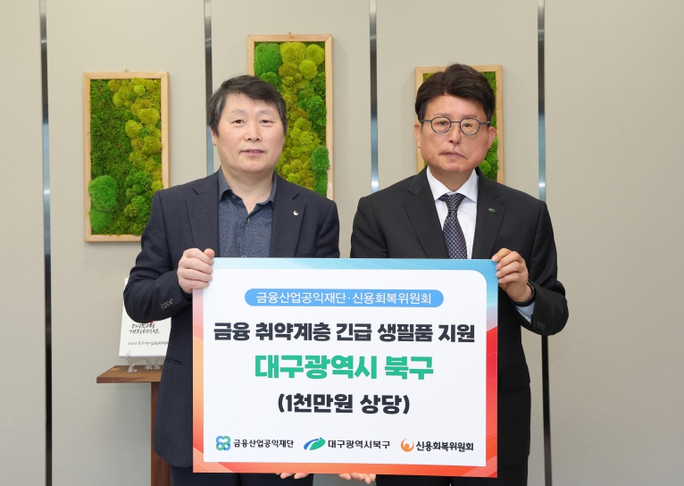 배광식 북구청장은“경제적으로 모두가 어려운 시기임에도 불구하고 지역사회에 선한 영향력을 보여주신 금융산업공익재단과 신용회복위원회에 감사드린다”고 전했다.