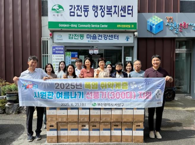 [무한뉴스=최진수 기자] 부산 사상구는 폭염과 무더위에 취약한 독거노인, 기초수급자 등 폭염취약계층 300세대에 대해 시원한 여름나기를 위한 선풍기300대를 구입하여 배부했다.
