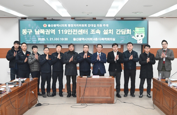 [무한뉴스=최진수 기자] 울산시의회 강대길 의원은 21일 의회 4층 다목적 회의실에서 주민, 소방본부, 동부소방서, 울산도시공사 관계자 등과 함께 ‘동구 남목권역 119안전센터 조속 설치’ 간담회를 가졌다.