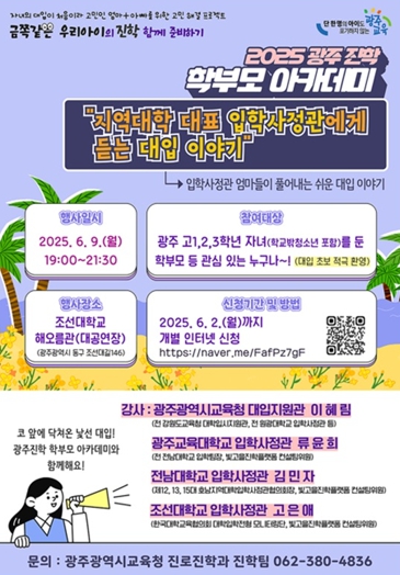참가를 희망하는 학부모는 오는 6월 2일까지 시교육청 진로진학지원센터를 통해 온라인 사전 신청을 하면 된다. 당일 현장 접수도 가능하다.