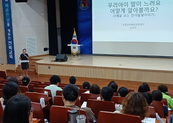 [무한뉴스=정민정 기자] 전북특별자치도교육청은 21일 창조나래 시청각실에서 언어 발달 지연 유아를 조기에 발견·지원하는 ‘톡톡(Talk Talk)! 말해드림(Dream) 언어 발달 지원 사업’ 설명회를 개최했다.