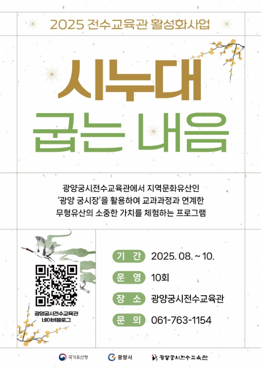 이 프로그램은 국가유산청이 주최하고 광양궁시전수교육관이 주관하는 ‘2025 전수교육관 활성화 사업’의 일환으로 추진된다.