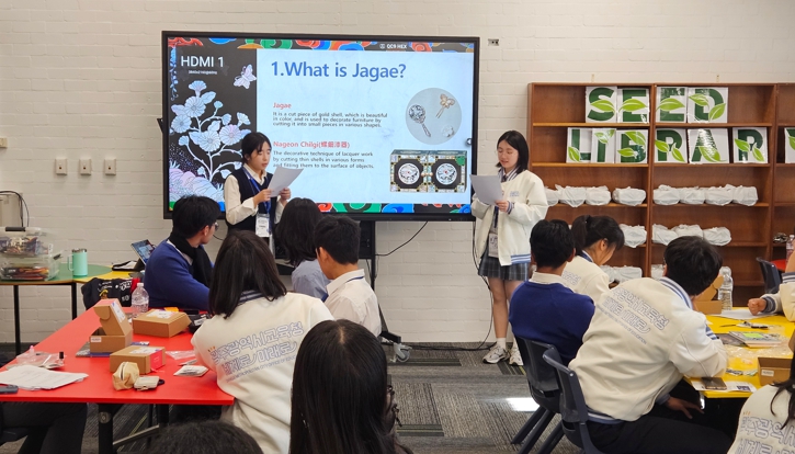 이어진 자개 공예 체험에서는 한국의 전통미와 수공예 예술의 가치를 직접 소개하며, 단순한 수업교류를 넘어 문화 기반 진로탐색 활동으로 확장됐다.