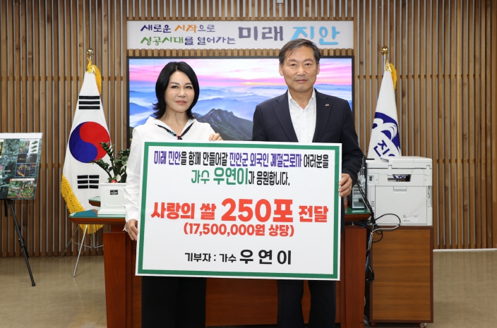 | ▲ 가수 우연이, 진안군 외국인 계절근로자 응원 위해 쌀 250포대 기부 |