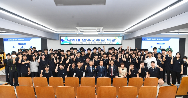 특강에서 유희태 완주군수는 “넓게 보고, 깊이 도전하는 삶”의 중요성을 강조하며, 끊임없는 자기계발과 도전 정신이 미래를 여는 열쇠임을 학생들에게 전했다.