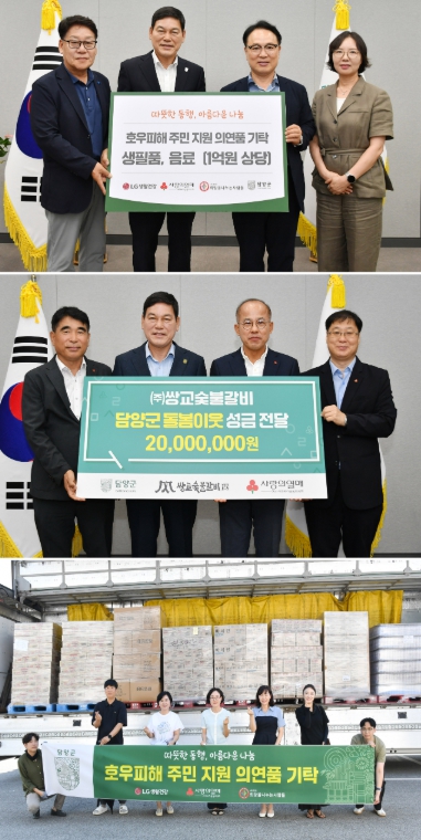 이밖에도 호남향우회가 선풍기 45대를, 전남 사회서비스원은 샴푸·린스 등 50박스를, 뉴파워 프라즈마는 라면·생수 등 421만 원 상당을 기탁하며 마음을 전했다.