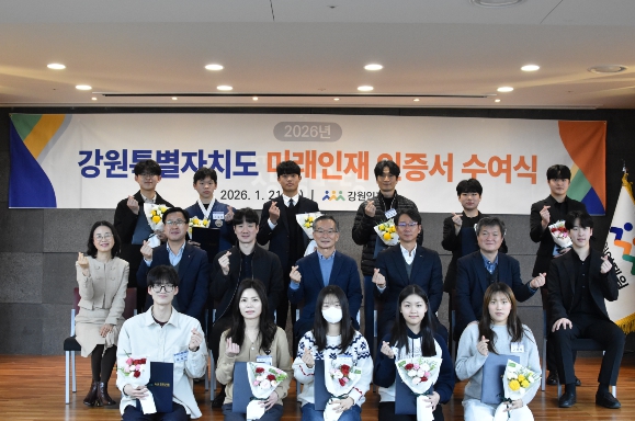 [무한뉴스=정민정 기자] 강원인재원은 1월 21일 KT·G 상상마당 춘천스테이 나비홀에서 ‘2026년 강원특별자치도 미래인재 인증서 수여식’을 개최했다고 밝혔다.