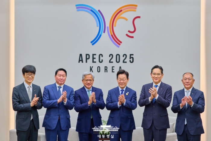 [무한뉴스=최진수 기자] 이재명 대통령은 10월 31일 오후 2시 경주 APEC 정상회의를 계기로 방한한 젠슨 황 엔비디아 대표를 만나, 대한민국 AI 인프라를 비롯한 생태계 전반의 혁신 방안에 대해 의견을 교환했다. 이 자리에는 삼성전자 이재용 회장, SK 최태원 회장, 현대차그룹 정의선 회장, 네이버 이해진 의장이 함께했다.
