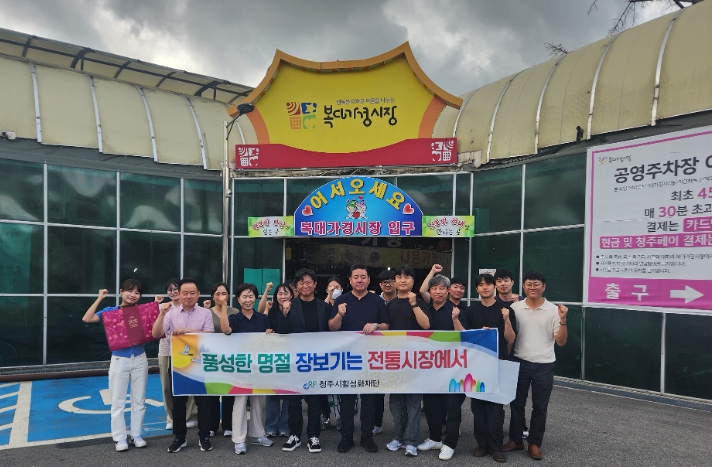 [무한뉴스=정민정 기자] 청주시활성화재단(대표이사 황종대) 전 직원은 추석 명절을 맞아 17일 복대가경시장을 방문하여 장보기를 실시했다.