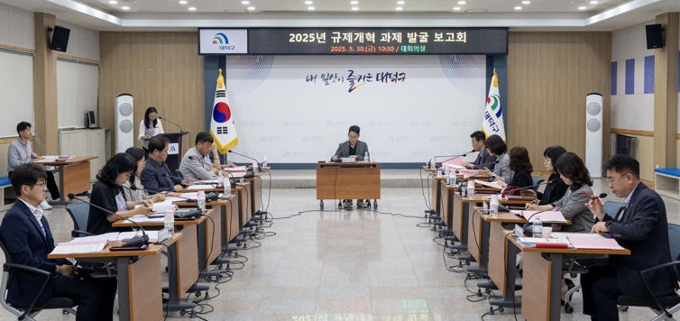 [무한뉴스=정민정 기자] 대전 대덕구는 올해 초부터 중점적으로 추진해 온 규제 혁신 일환으로 노기수 부구청장 주재로 ‘2025년 대덕구 규제개혁 발굴 보고회’를 개최했다고 2일 밝혔다.