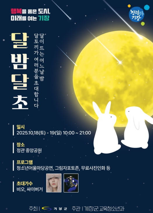 [무한뉴스=최진수 기자] 기장군은 오는 18일부터 19일까지 정관읍 중앙공원 일원에서 2025 기장군청소년어울마당 ‘달밤달초’를 개최한다고 15일 밝혔다.