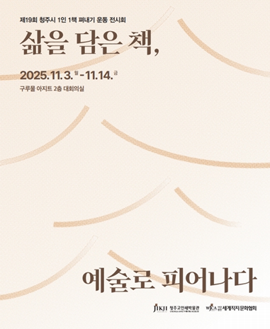 [무한뉴스=정민정 기자] 청주고인쇄박물관이 주최하고 (사)세계직지문화협회가 주관하는 ‘제19회 청주시 1인 1책 펴내기 운동’ 시상식 및 작품 전시회가 오는 3일 구루물 아지트 2층 대회의실에서 열린다.