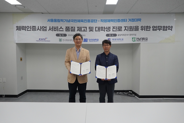 이번 협약을 통해 체육공단과 거점대학은 국민체력인증사업 관련 공동연구 및 수업·특강, 소속 대학생 진로 지원 상담 등 취업 역량 강화를 위한 상호 협력을 이어갈 예정이다.