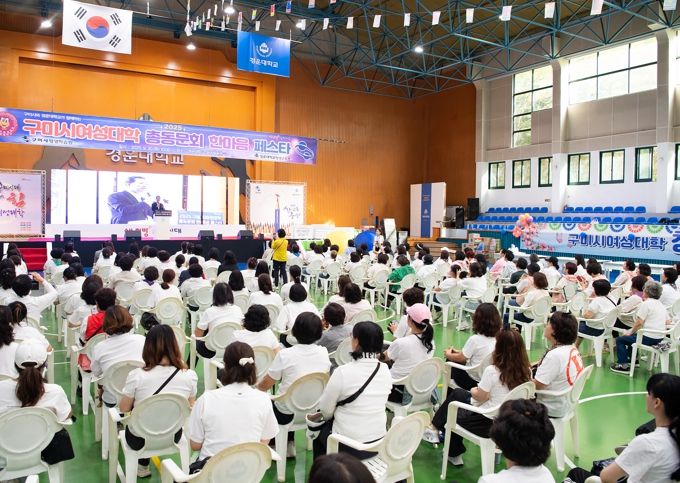 [무한뉴스=최진수 기자] 구미시는 9월 30일 경운대학교 실내체육관에서 구미시여성대학 수강생과 총동문회 회원 등 200여 명이 참석한 가운데 ‘2025년 구미시여성대학 총동문회 한마음 페스타’를 열었다. 이번 행사는 회원 간 교류와 협력을 강화하고 지역 발전의 주역으로서 결속을 다지는 자리로 마련됐다.
