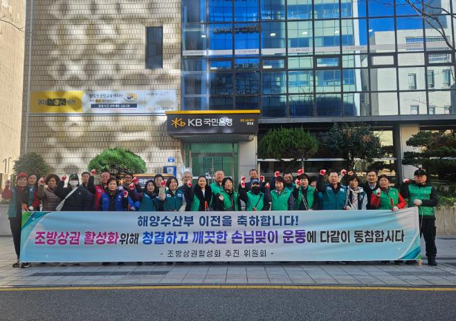 [무한뉴스=최진수 기자] 부산 동구 범일2동은 지난 12월 18일 해양수산부 임시청사 개청을 앞두고 조방상권 활성화를 위한 손님맞이 도시환경정비를 실시했다.
