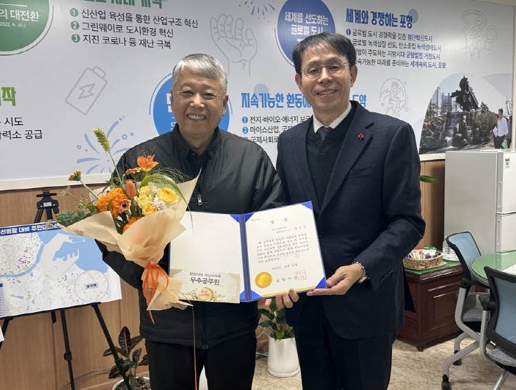 [무한뉴스=최진수 기자] 포항시는 ‘민원처리 단축 마일리지제’ 11월 우수공무원으로 남구청 건설교통과 방재수 주무관을 선정하고, 지난 18일 시상식을 열어 그 노고를 격려했다.