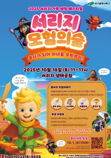 [무한뉴스=최진수 기자] 대구 북구청은 오는 10월 18일 동호동 서리지 생태공원 일원에서 '2025 서리지 가족 체험 페스티벌 – 서리지, 모험의 숲'을 개최한다고 밝혔다.