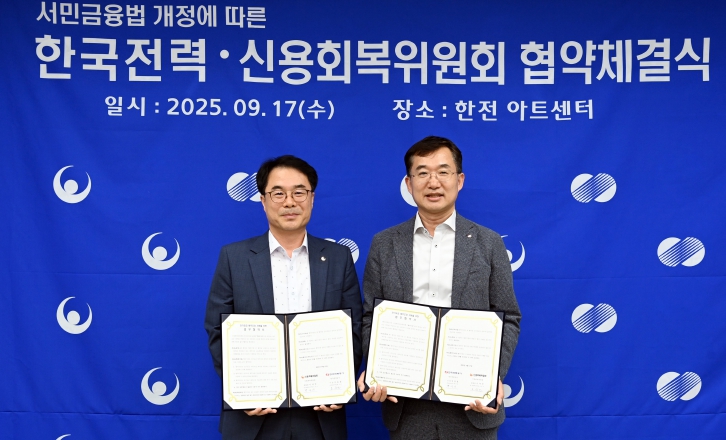한전은 9월 17일 서울 양재동 한전아트센터에서 신복위와 함께 전기요금 채무조정 시행을 위한 업무협약을 체결했다. 양 기관은 '서민의 금융생활 지원에 관한 법률(서민금융법)' 제75조 개정안 시행(9월 19일)에 맞춰 개인 채무조정 대상자의 연체 전기요금을 금융 채무와 통합하여 조정하는 제도를 본격 추진하게 된다.