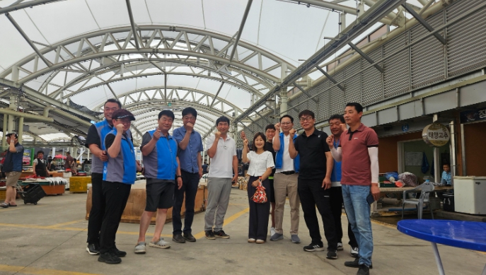 참가자들은 옥곡5일장 인근에서 플로깅 봉사활동을 실시한 뒤, 온누리상품권으로 50만 원 상당의 농수산물을 구매하며 경기 침체와 소비 위축으로 어려움을 겪는 상인들에게 힘을 보탰다.