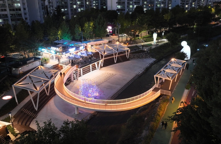 폭 2.5m, 길이 45.7m의 초승달 모양 ‘달빛 브릿지’는 다리를 건너면서 당현천의 아름다움을 만끽할 수 있다.