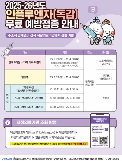 | ▲ 하남시, 9월 22일부터 인플루엔자(독감) 무료 예방접종 본격 실시 |