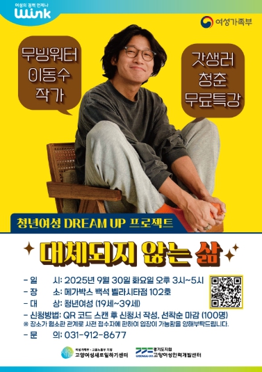 [무한뉴스=정승훈 기자] 고양여성새로일하기센터·고양여성인력개발센터는 청년 여성들의 진로 설계와 자기 개발을 지원하고자 오는 30일 오후 3시, 메가박스 백석벨라시타점에서 청년 여성 대상 무료 특강을 개최한다.