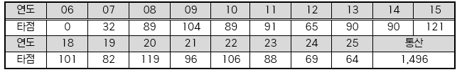 | ▲ 김현수 연도별 타점 |