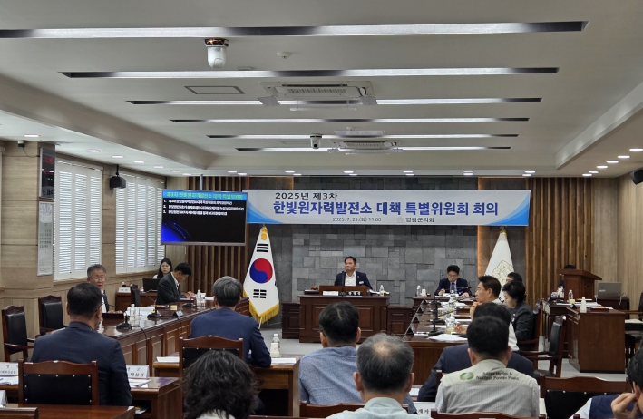 [무한뉴스=정민정 기자] 영광군의회는 7월 29일, 2025년 제3차 한빛원자력발전소 대책 특별위원회(위원장 장영진)를 열고, 한빛원전 관련 주요 현안에 대해 한국수력원자력 한빛원자력본부로부터 보고를 받고 대책을 논의했다.