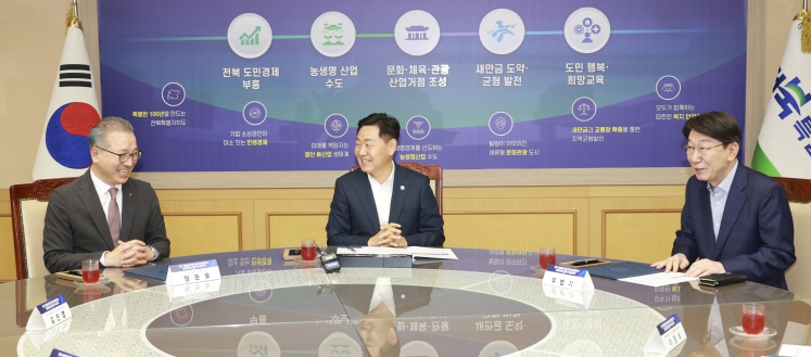 8일 전북특별자치도와 전주시, 롯데쇼핑(주)은 도청 회의실에서 3자 투자협약을 체결했다. 협약식에는 김관영 전북특별자치도지사와 우범기 전주시장, 정준호 롯데쇼핑 대표이사를 비롯한 주요 관계자가 참석했다.