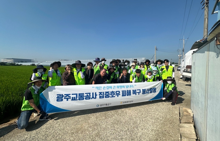 [무한뉴스=정민정 기자] 광주교통공사는 25일 광주시 광산구 용곡동 일대의 집중 호우 피해 현장을 방문해 수해 복구를 돕기 위한 봉사 활동을 펼쳤다.